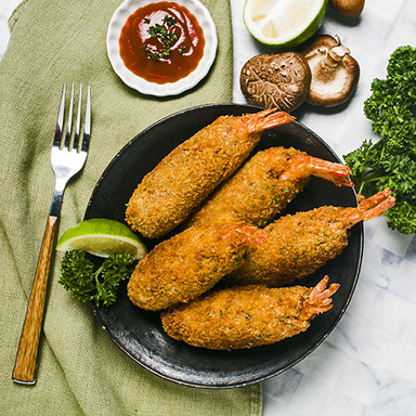- 10 pcs large shrimp/prawn, peeled but retain tail, deveined