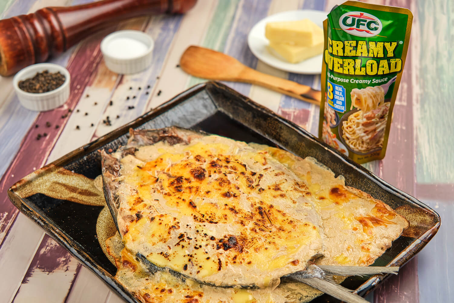 4. Spread cheese sauce over bangus then top with more melting cheese