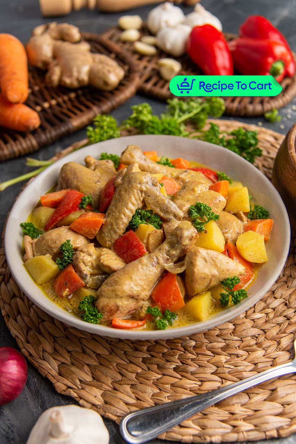 3. Sauté garlic, onion, ginger, and chicken. Saute for 10 minutes. Add curry powder, pepper, and gata mix. Cover and simmer for 25 minutes, stirring occasionally.
