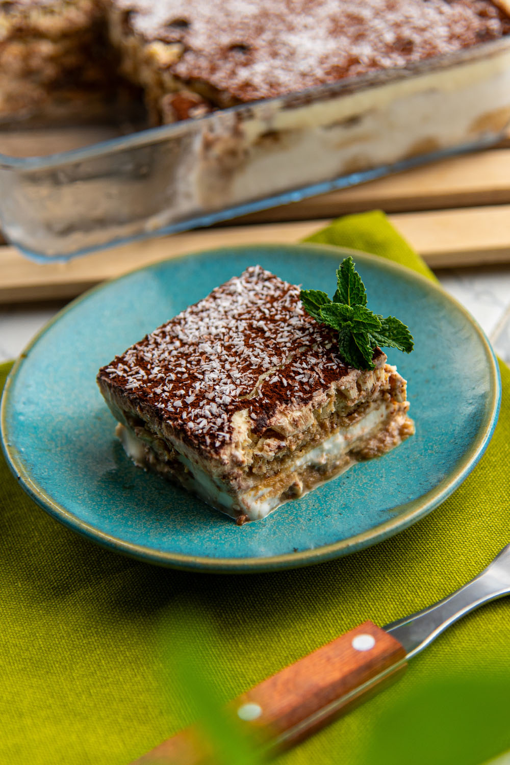 5. Alternate layers of lady fingers dipped in coffee mixture and coconut cream mixture.