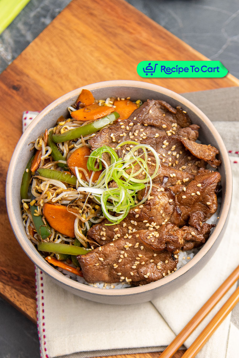 3. Top stir-fried beef and vegetables over a scoop of rice.