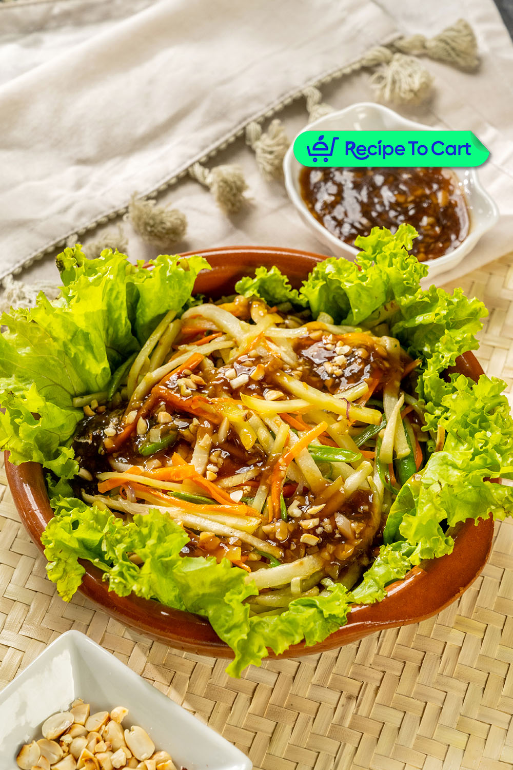 3. Serve vegetables, topped with sauce and peanut.
