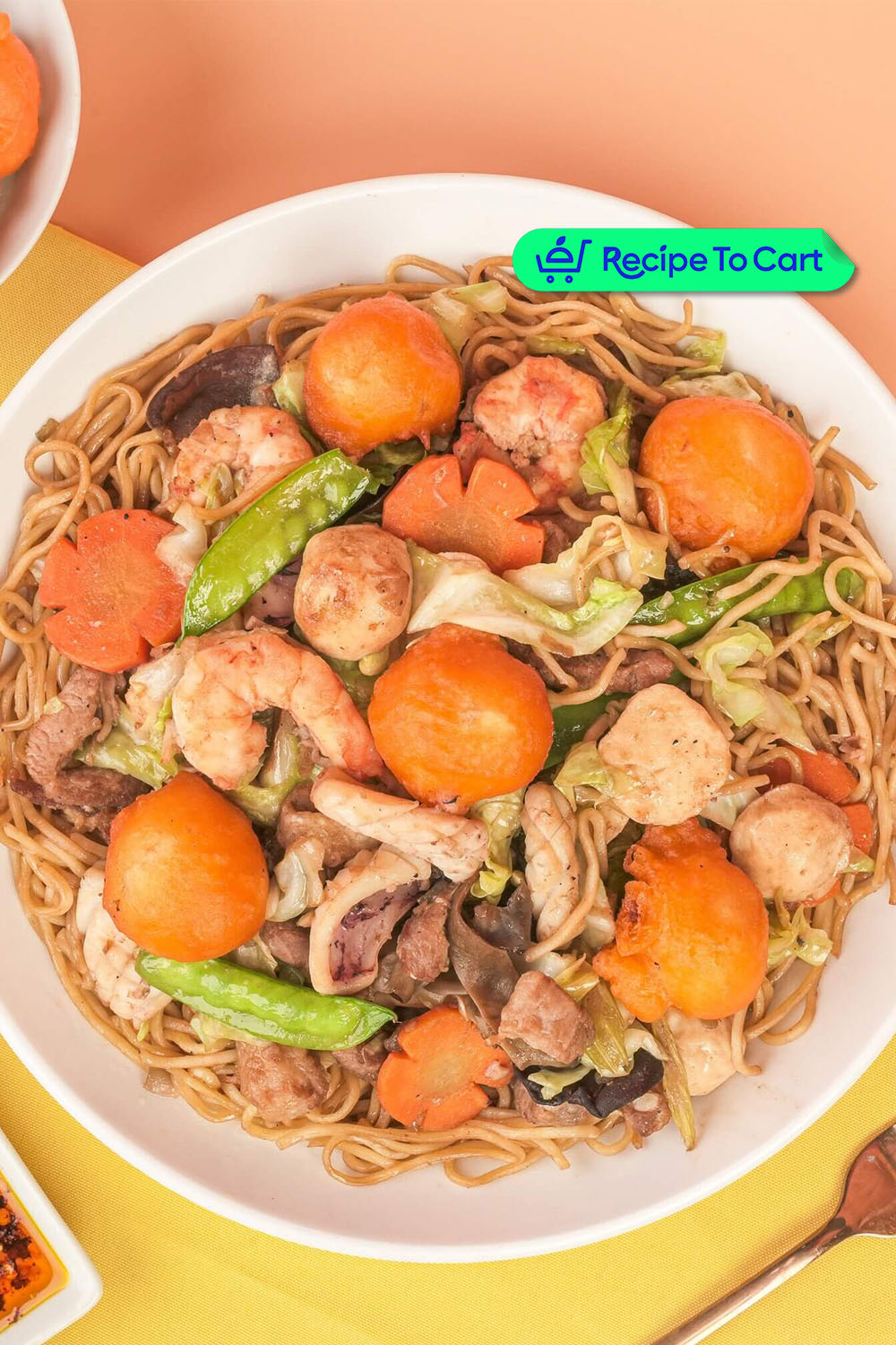 3. Heat a pot of water, add salt, and bring to a boil. Blanch canton noodles until cooked. Drain and arrange on a serving platter.