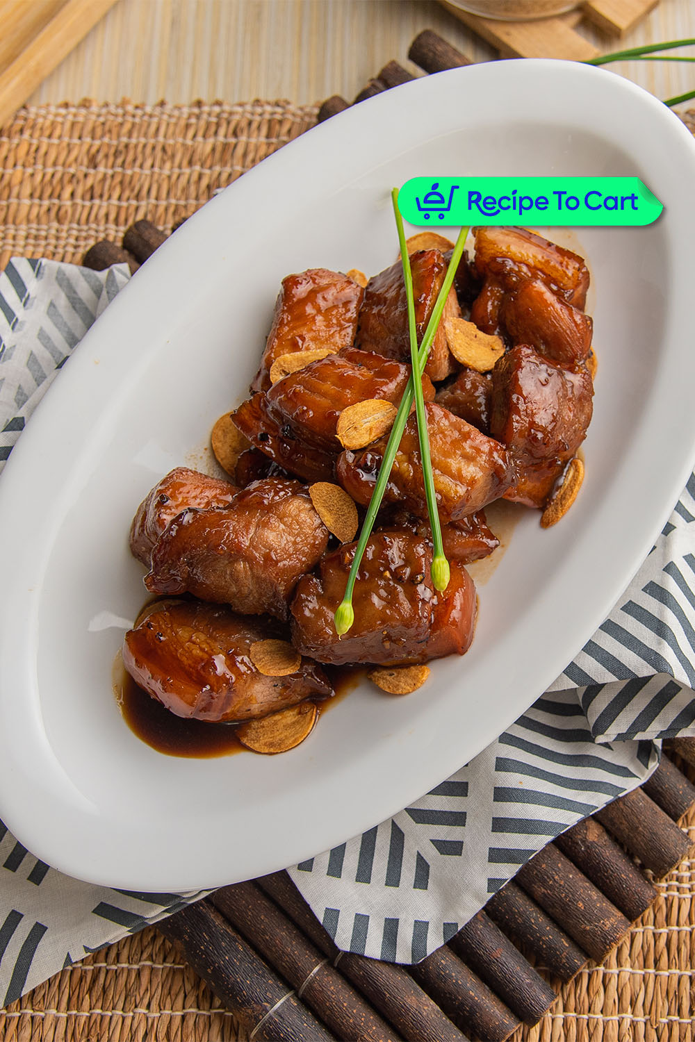 2. Sauté garlic from marinade. Add pork, cook to brown both sides. Add marinade. Cover and simmer until tender and the sauce has caramelized.