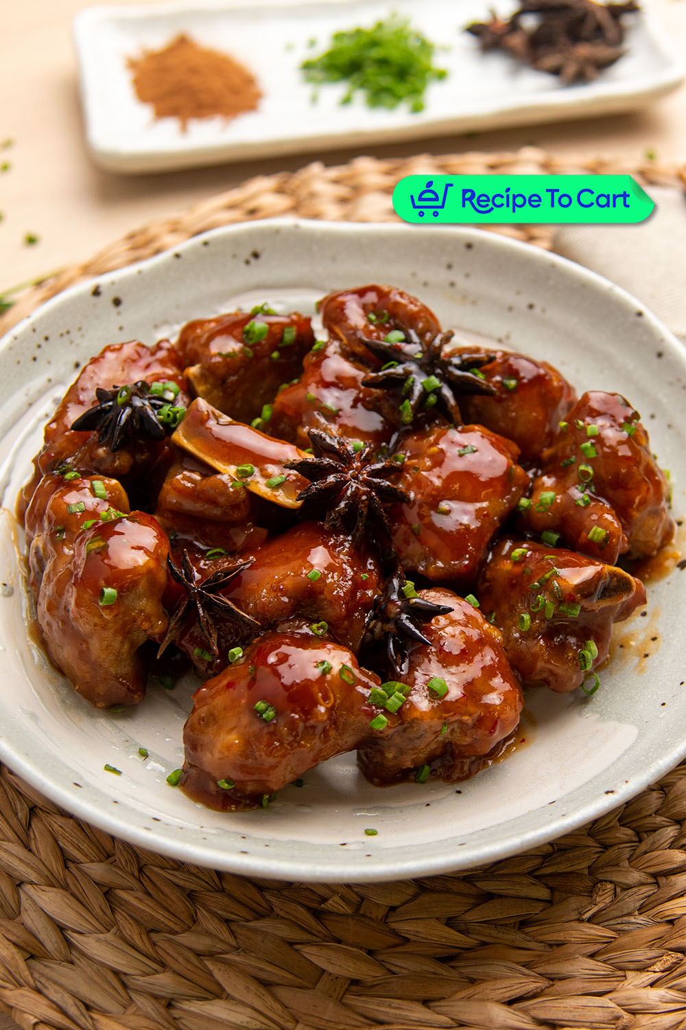 1. Combine pork and seasoning ingredients in a pot with water. Let it boil and simmer until tender. Drain.