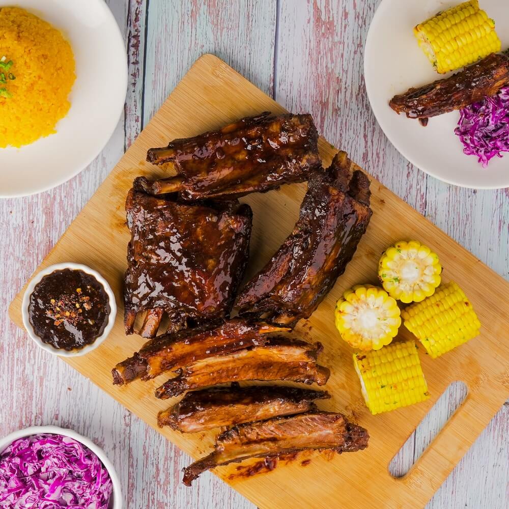 3. After simmering, remove the ribs and continue to cook the sauce until it thickens, set aside for basting.